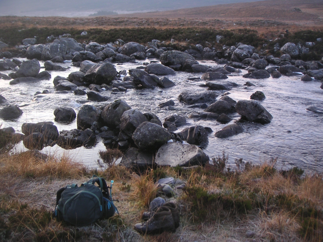 ![]() Packed up and ready to go. Now which way was down? Shortly after leaving here I did manage to head too far east and ended up past the top of Meall Gorm. Quick bit of map and compass work, a bearing south west, and soon all was right with the world again, but I lost too much time to get to the pub that day. |