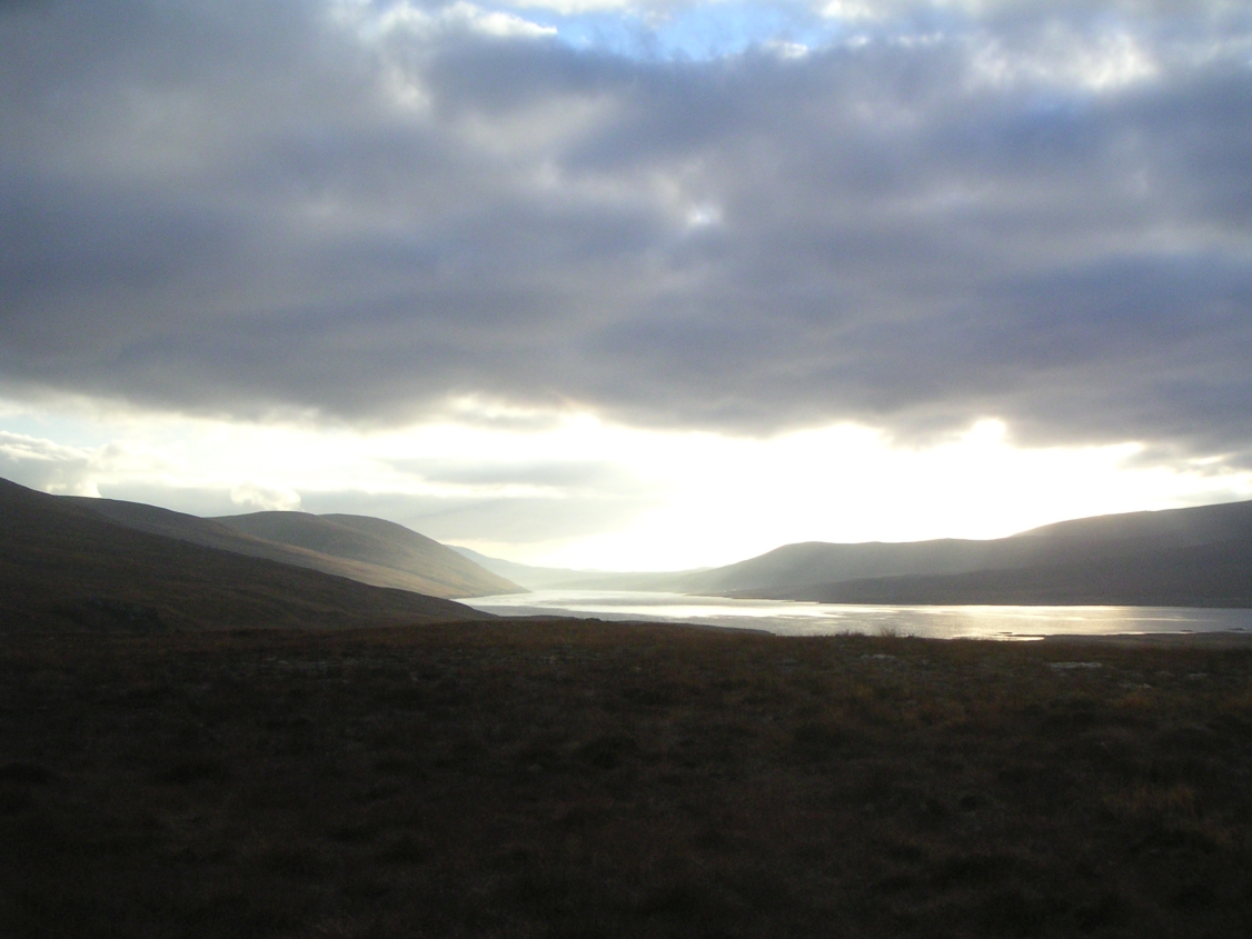 Sun rising (into the clouds unfortunately) over Loch Glascarnoch. |