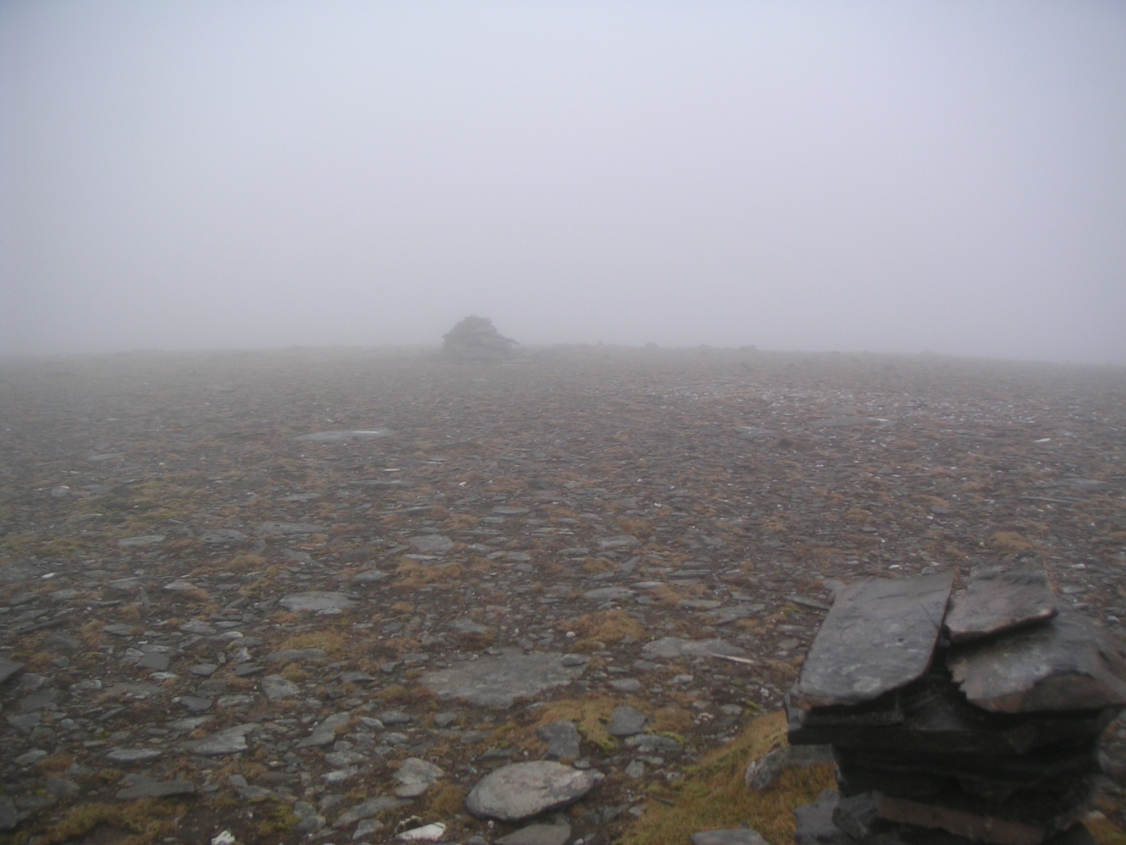 Pleased to come out of the mist and be on the path, above Loch a'Gharbhrain. And the car is down there somewhere. |