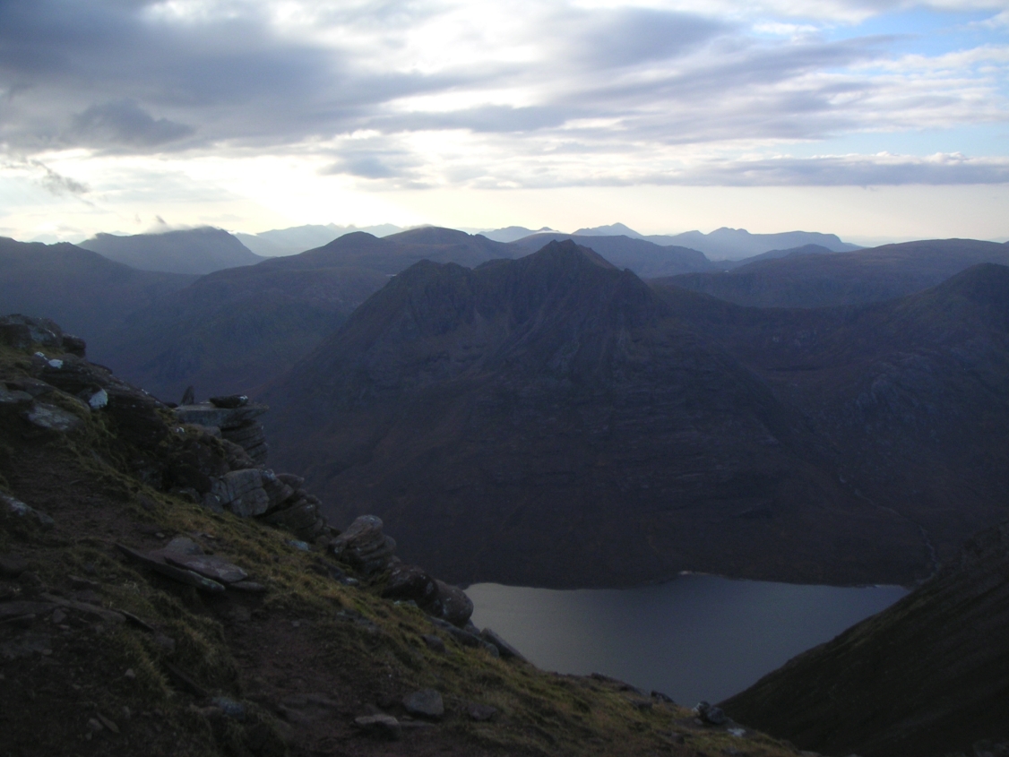 Fisherfield Six, with Slioch behind, and Loch na Sealga on the right. |