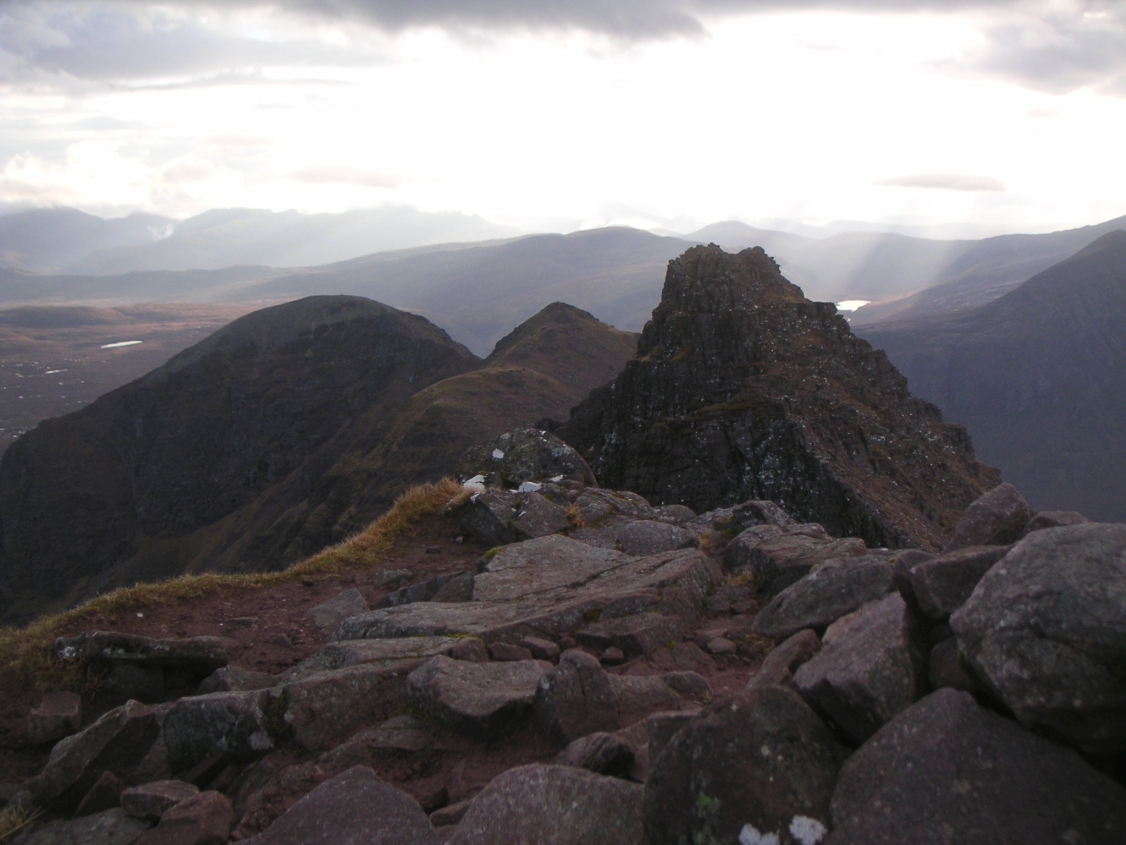 ![]() From the flank of Sgurr Fiona, looking back to Bidein a' Ghlas Thuill. |