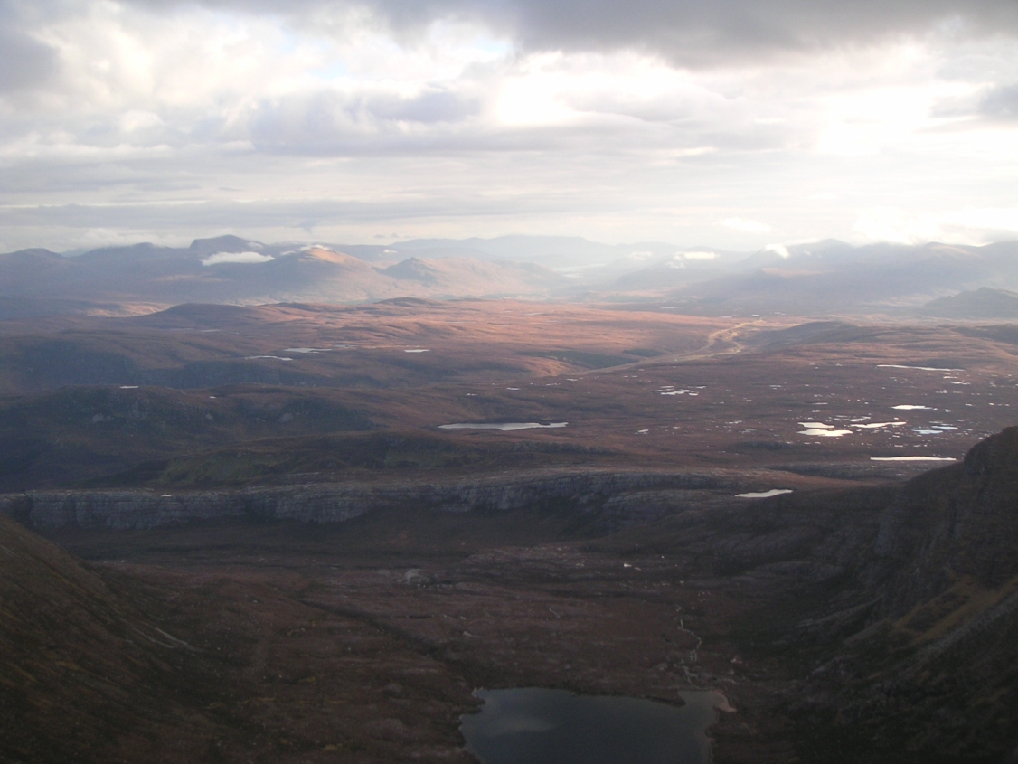 ![]() And from the top of #280 I can see my second last munro (Sgur Fiona) and to the left Lord Berkeley's Seat and the Corrag Bhuidhe. You may be surprised to hear I decided against heading over them today. Behind that is the Fisherfield Six. Fantastic. |