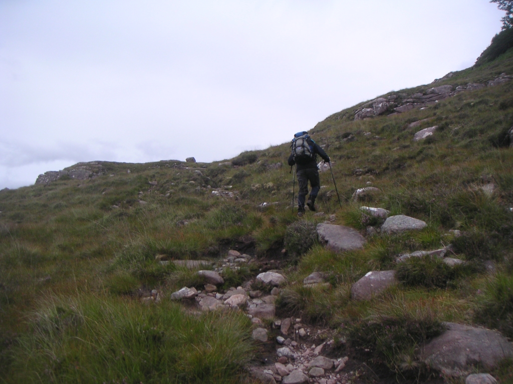 Climbing up out of Dundonnell, after finding the hidden path. |