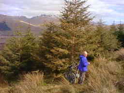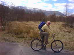 After our four and a half mile hour of hell cycle uphill, at the end of the road. Ben Challum in the background, I think. Only minor suffering at this point. |