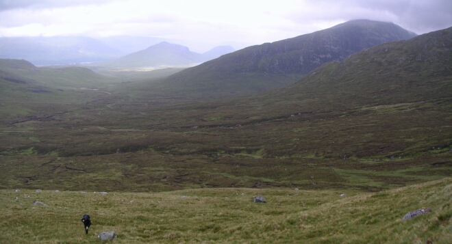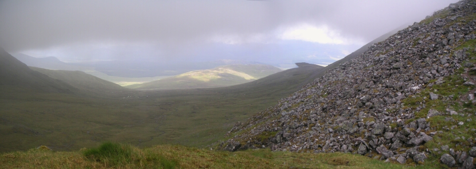South to Ben Alder on the left and Beinn a Chumhainn on the right. |