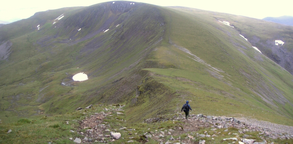 Nearing the top of Geal-charn, with Eibhinn and Aonach Beag behind us |