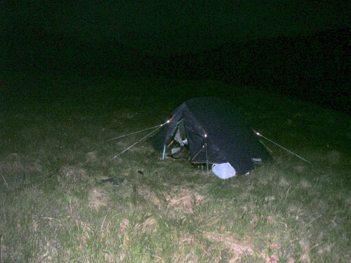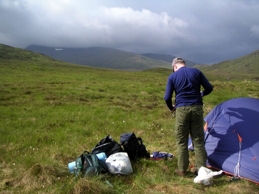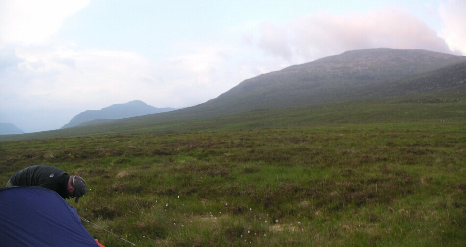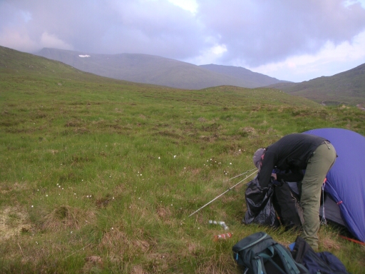 Fine spot for the tent. Beinn Eibhinn just visible in the distance. |