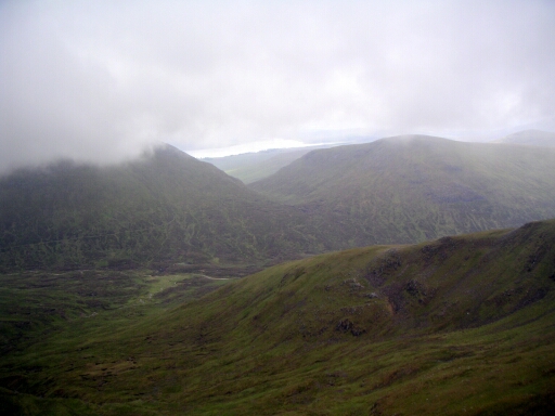 Back to Glen Spean from the Beleach between Beinn Eibhinn and Aonach Beag. Bikes and cars are away down there somewhere. |