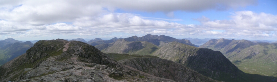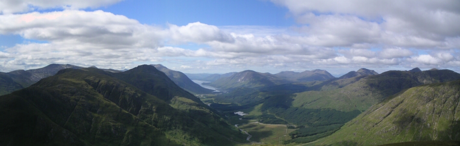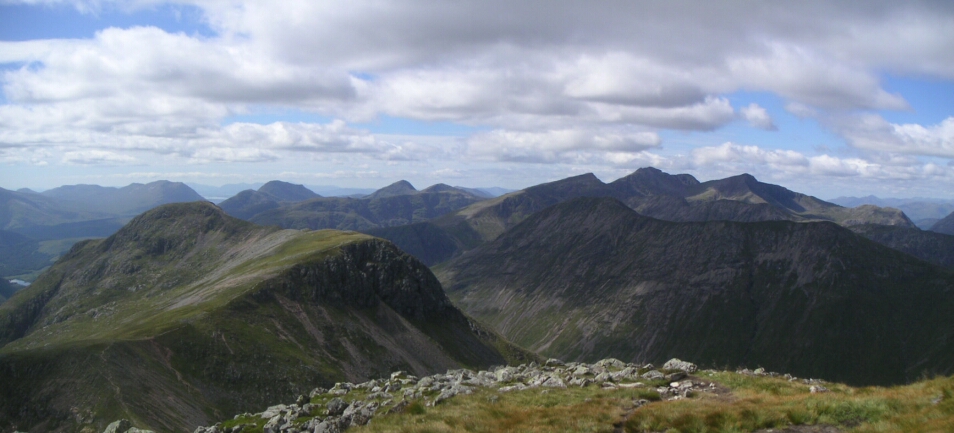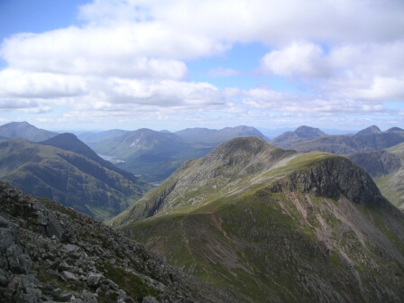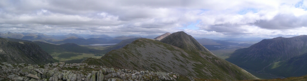 And looking North West we have the Buachalle Etive Beag ridge in the sun, with the highly regarded Aonach Eagach ridge behind and the Mamores on the right - now they look big and scary! |