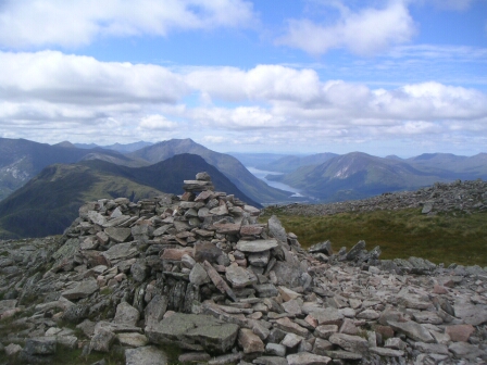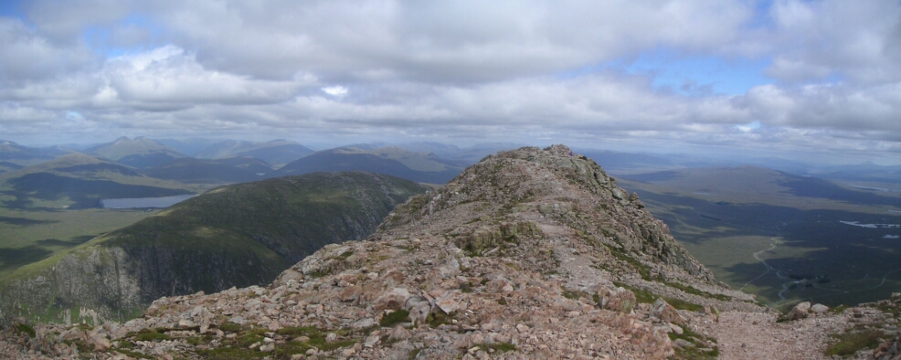 From the top of Stob Dearg, looking back down the ridge, with Etive Beag to the right, and Bidean nam Bain behind, then the Ballachulish Bridge and the Aonach Eagach ridge on the right - makes it all worthwhile. |
