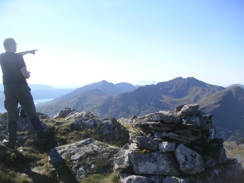 Ben Aden just over Stuart's shoulder - doesn't look to far! Of course we went over most of the Meall a Choire Dhuibh too, just for fun. |
