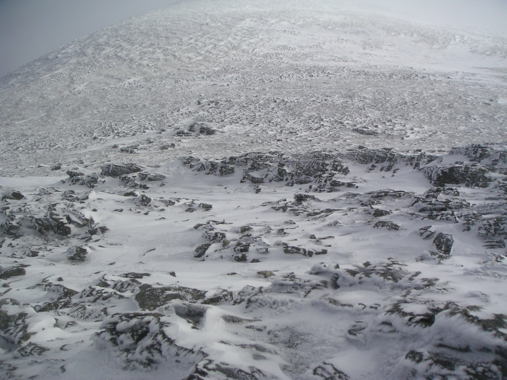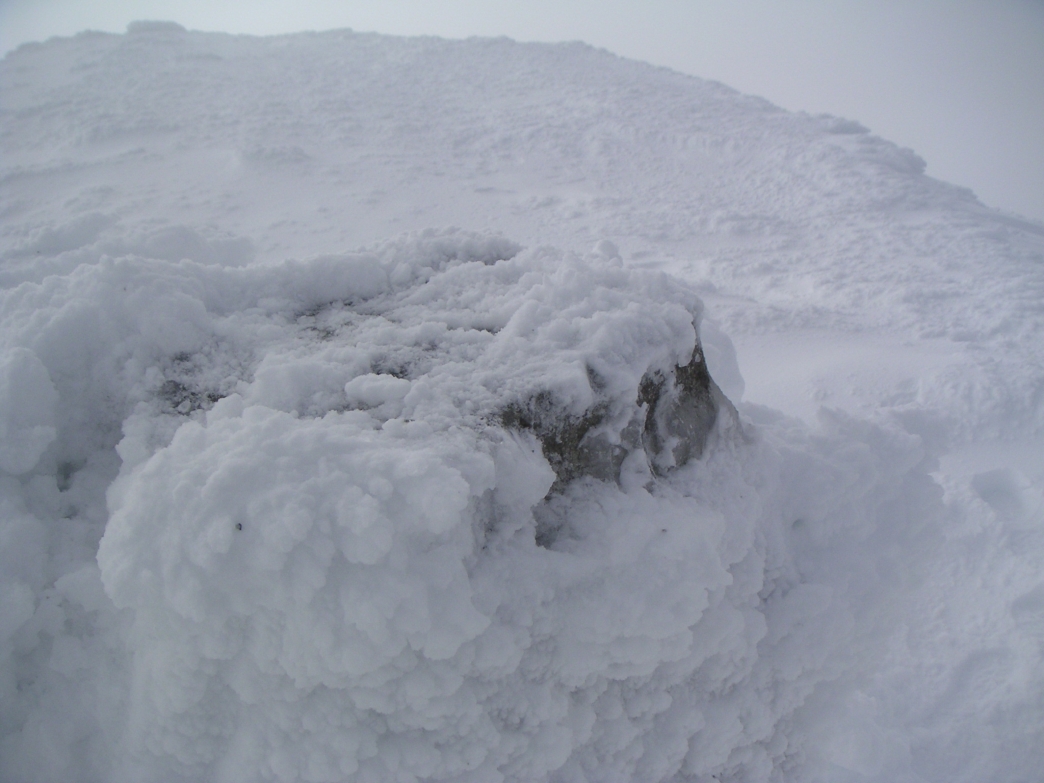Very icy summit trig point - had to hack the ice off just to check there was a trig point in there. Had hoped to do Ben Hope today too, but time was just a little tight, so another night in the tent, and Ben Hope on Saturday. |