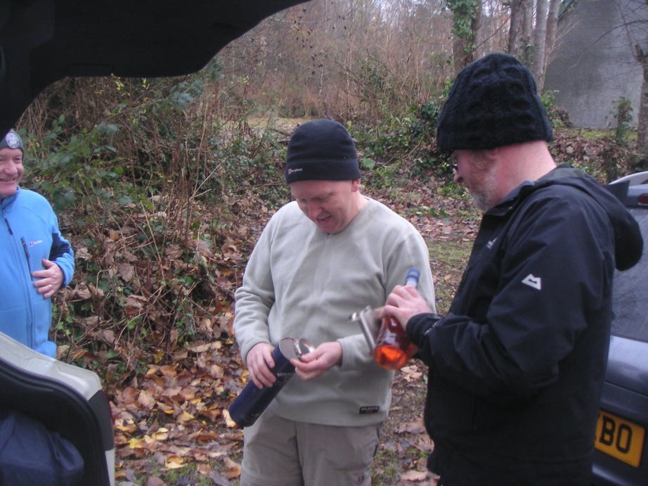 Gentlemen slightly apprehensive about the mist, in case it diluted the whisky. |