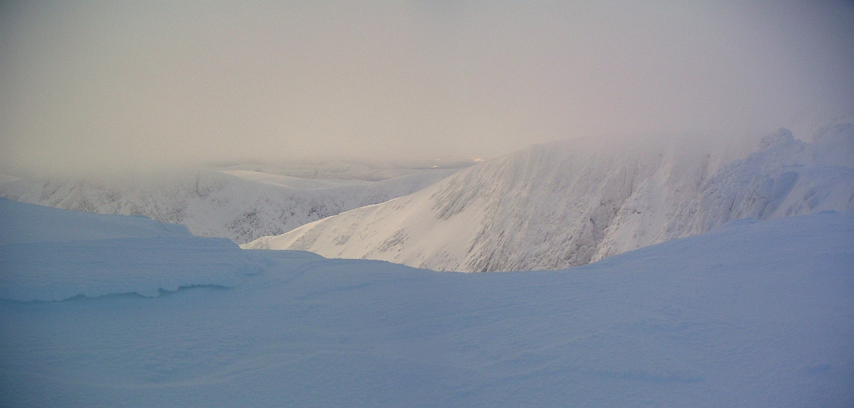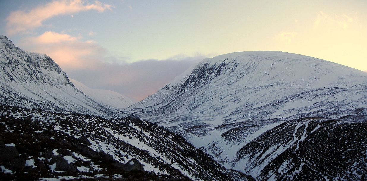 ![]() Colours gone a bit awry, but the first hill is the route in and out, the second one is Lurcher's Crag on the other side of the Lairig Ghru. |