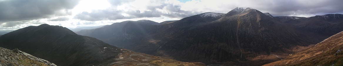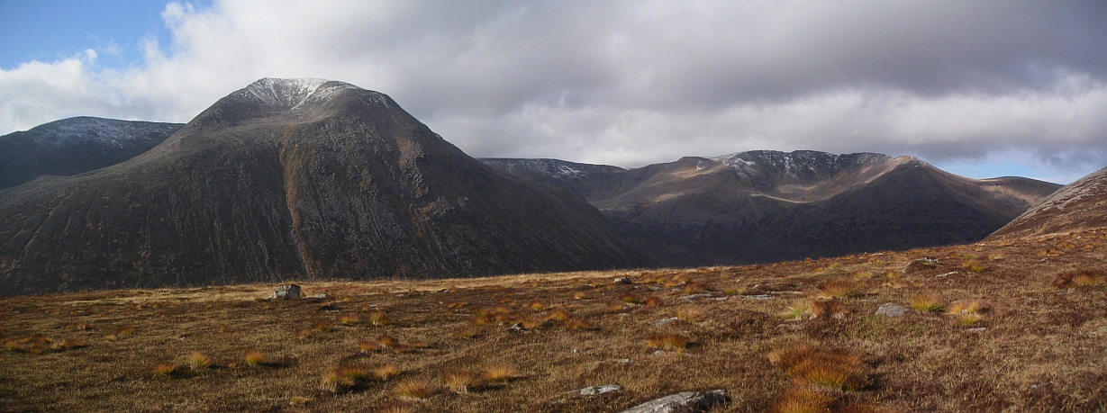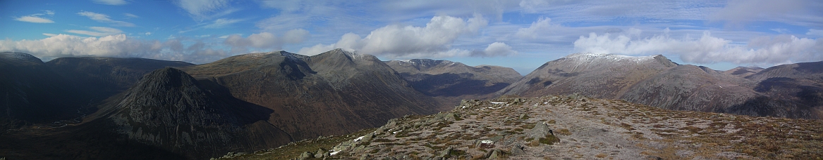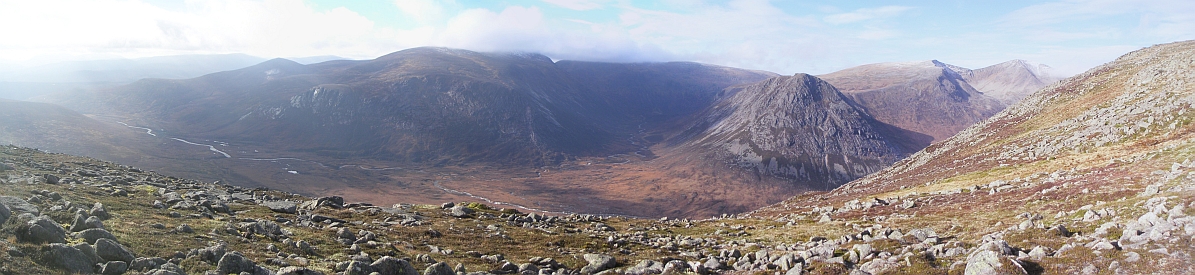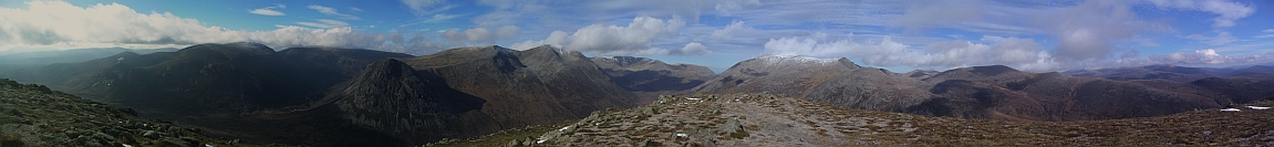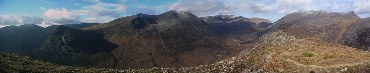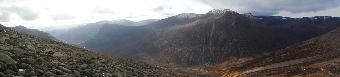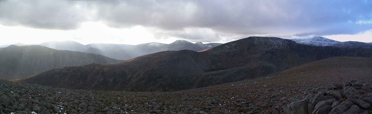 ![]() And now a view of, from the left, Beinn Bhrotain, Monadh Mor, The Devil's Point, and Cairn Toul. |