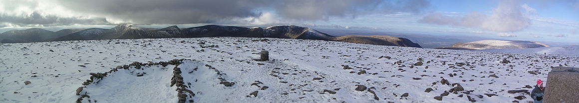 ![]() At the top of Carn a'Mhaim the view got even better. As well as the usual peaks we can now see Braeriach in the middle |