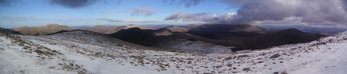 ![]() And North East to Cairn Gorm, Bynack More and Beinn Mheadhoin, then Beinn a'Chaorainn and Beinn a'Bhuird |