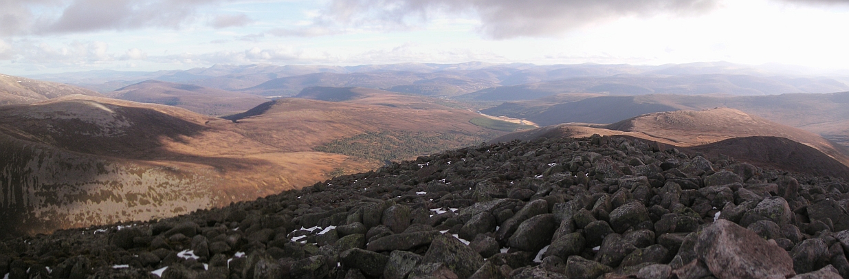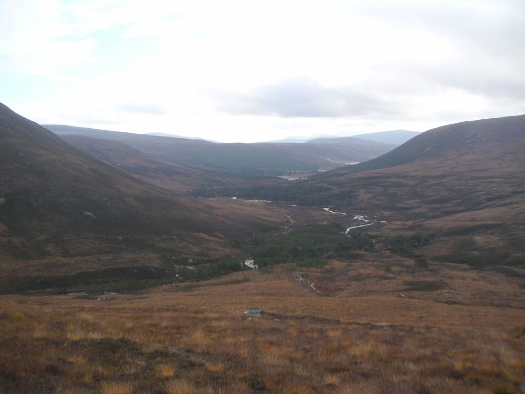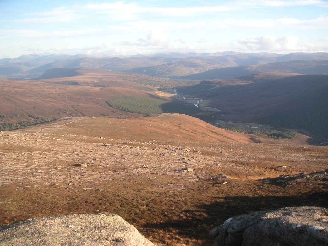 ![]() And looking South from the top, down the ridge and up Glen Lui to Linn of Dee. |