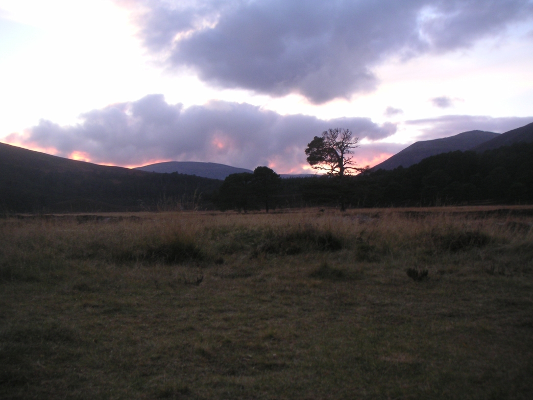 ![]() Back up to the path, to see the sun coming up on The Devil's Point. Beinn Bhrotain still on the left. |