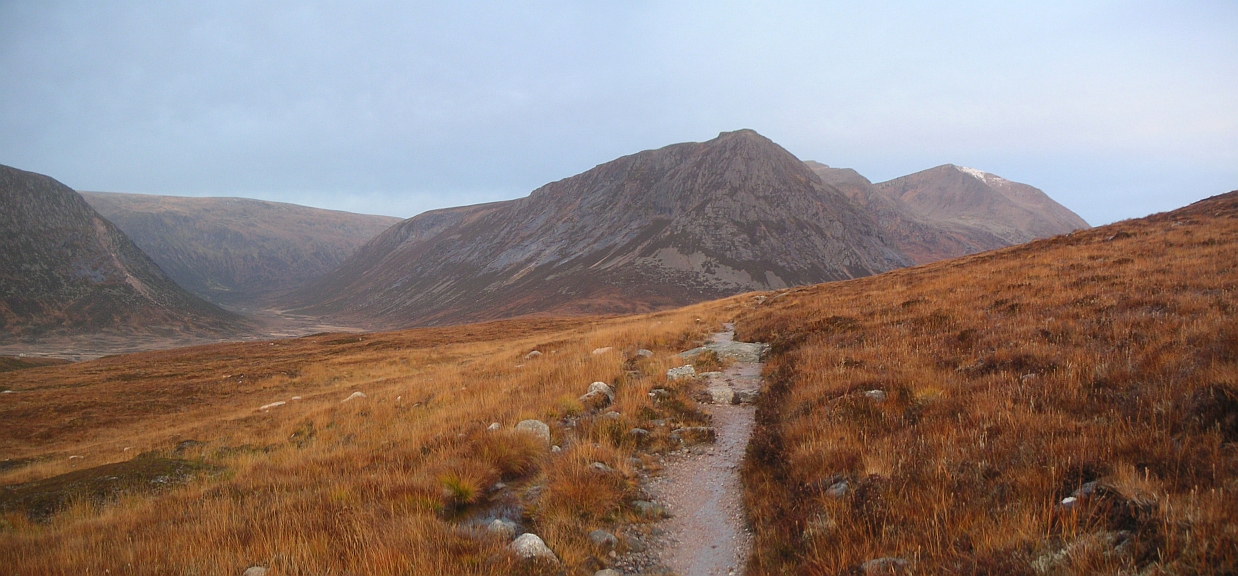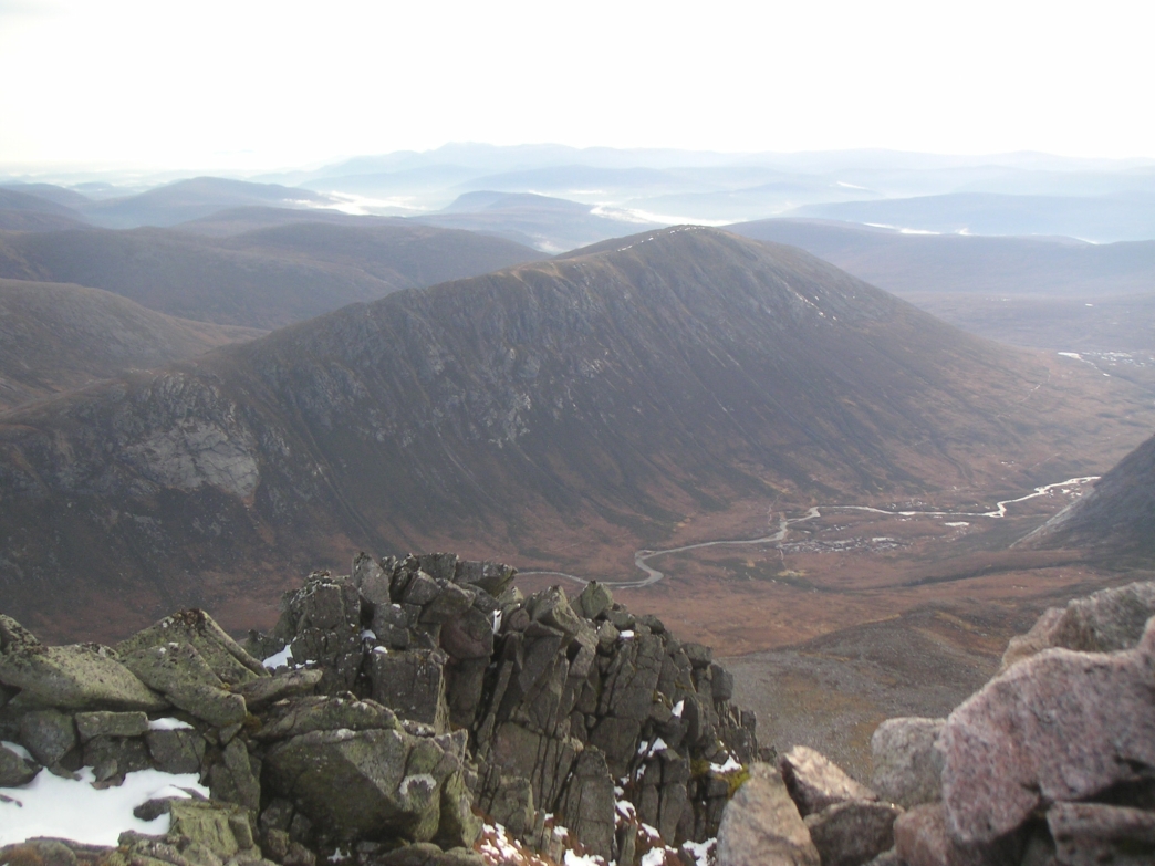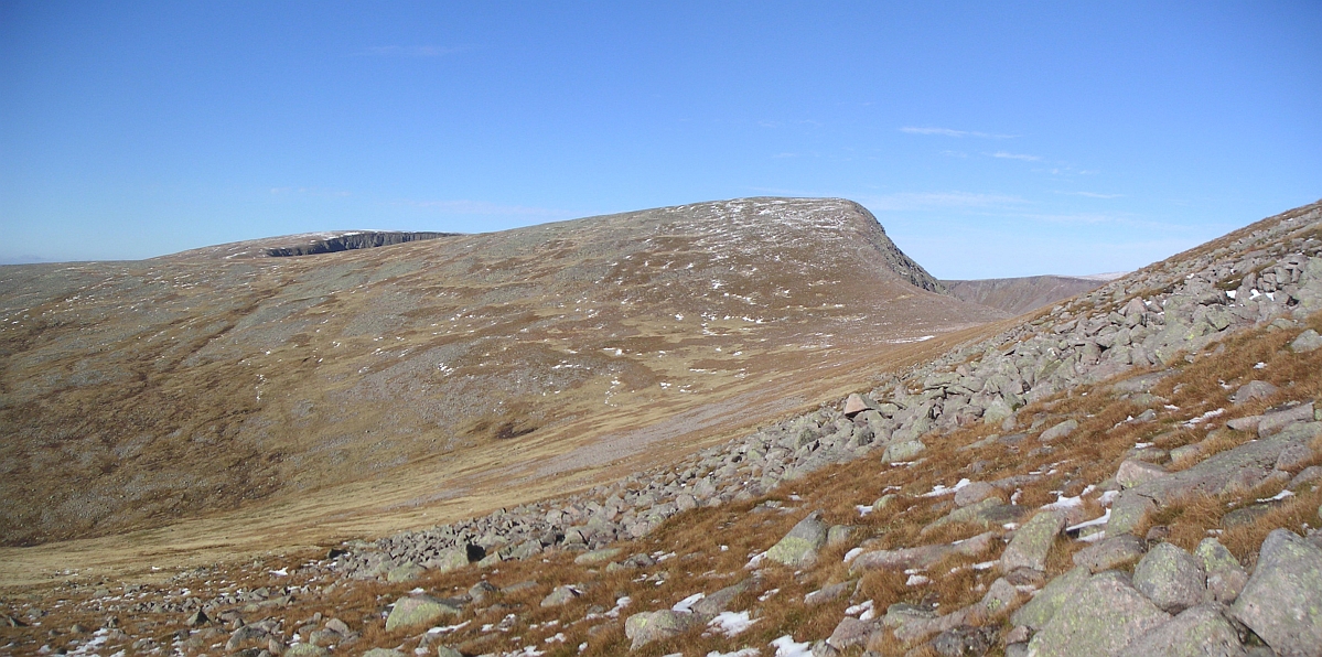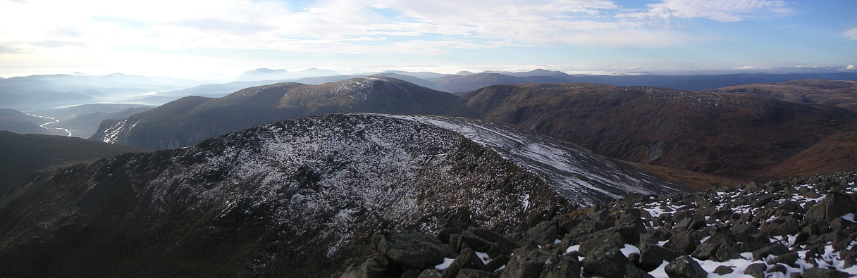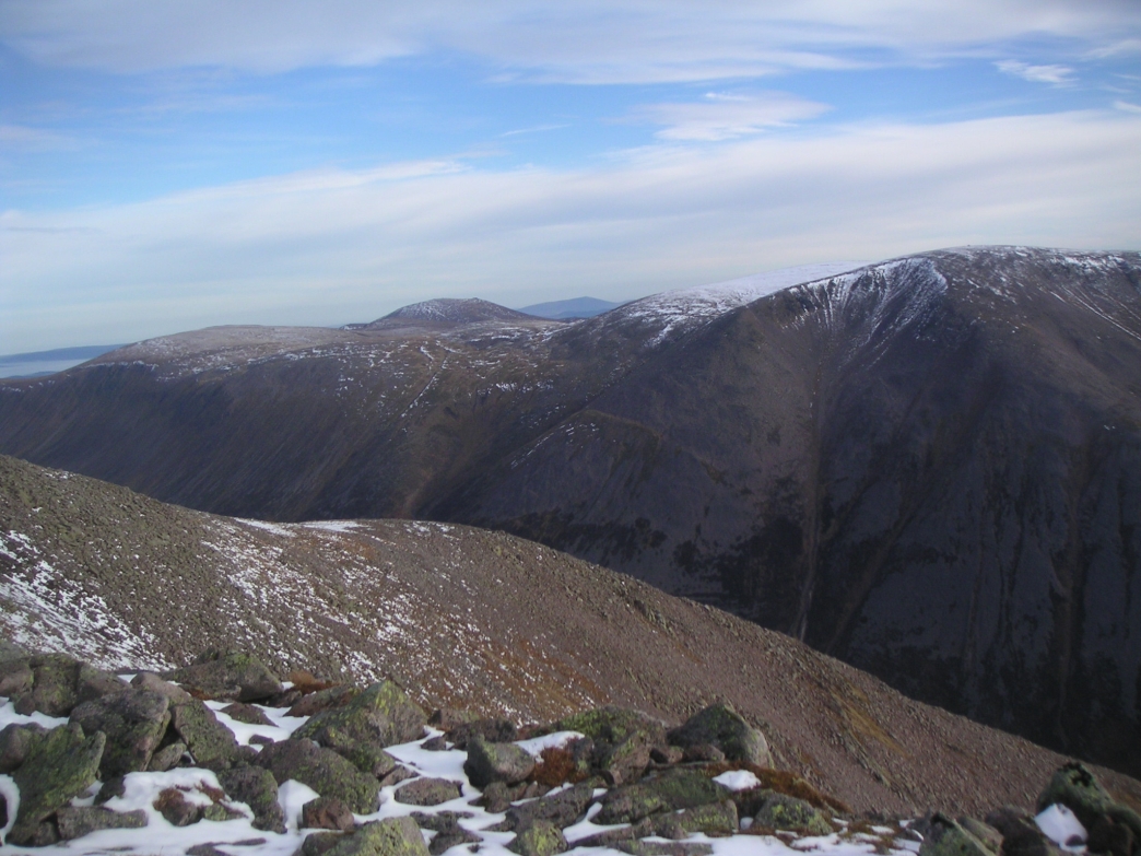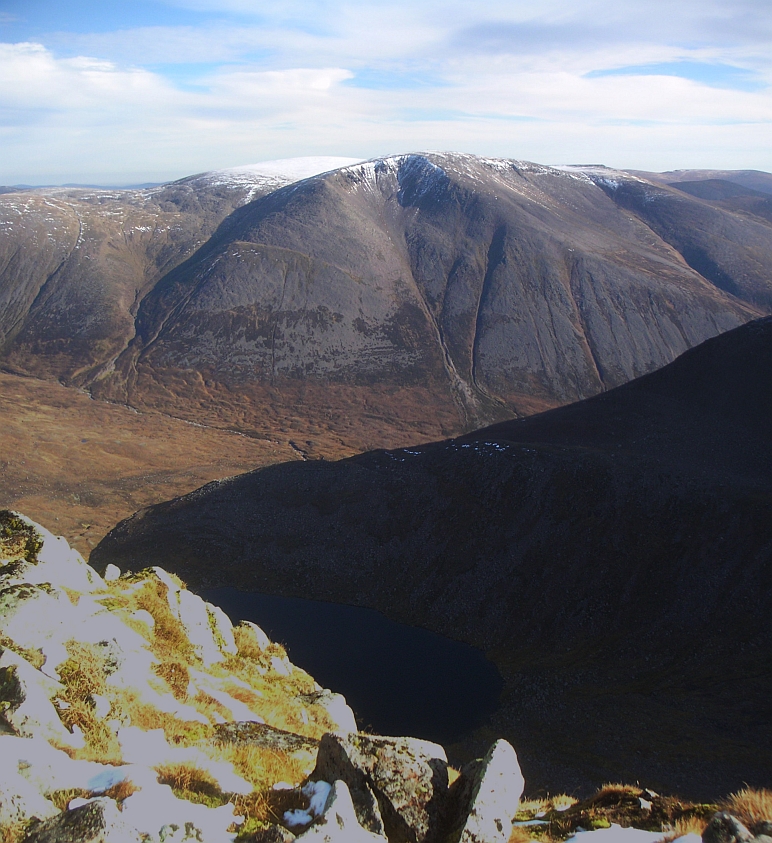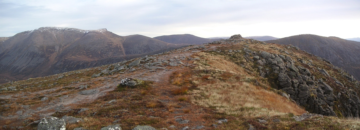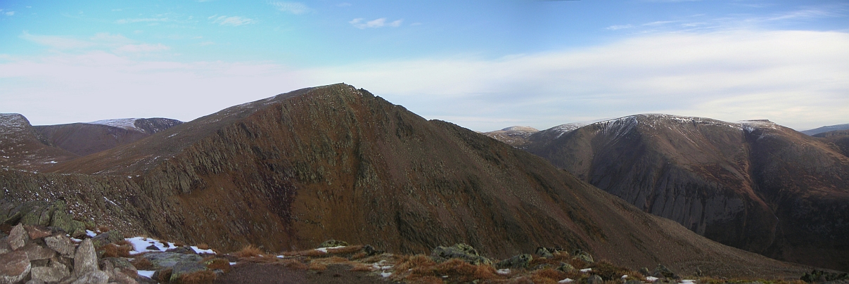 ![]() The Devil's Point, with Carn a'Mhaim to the left, and Beinn Bhrotain on the right |