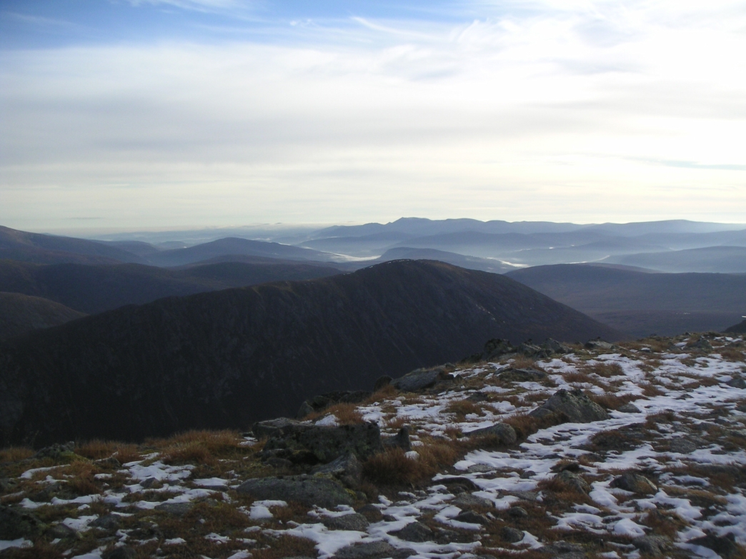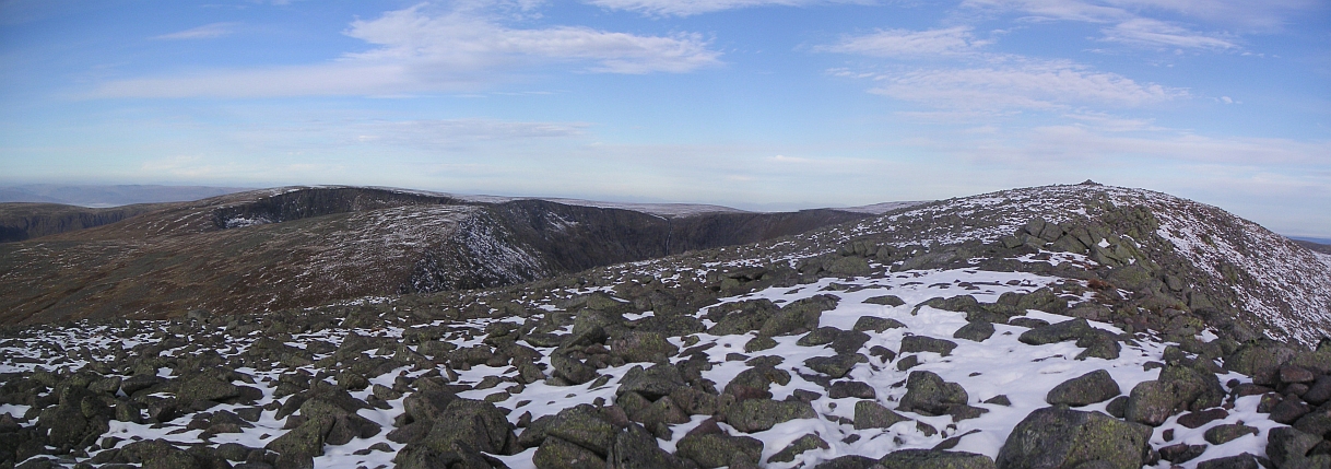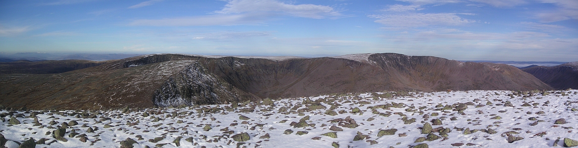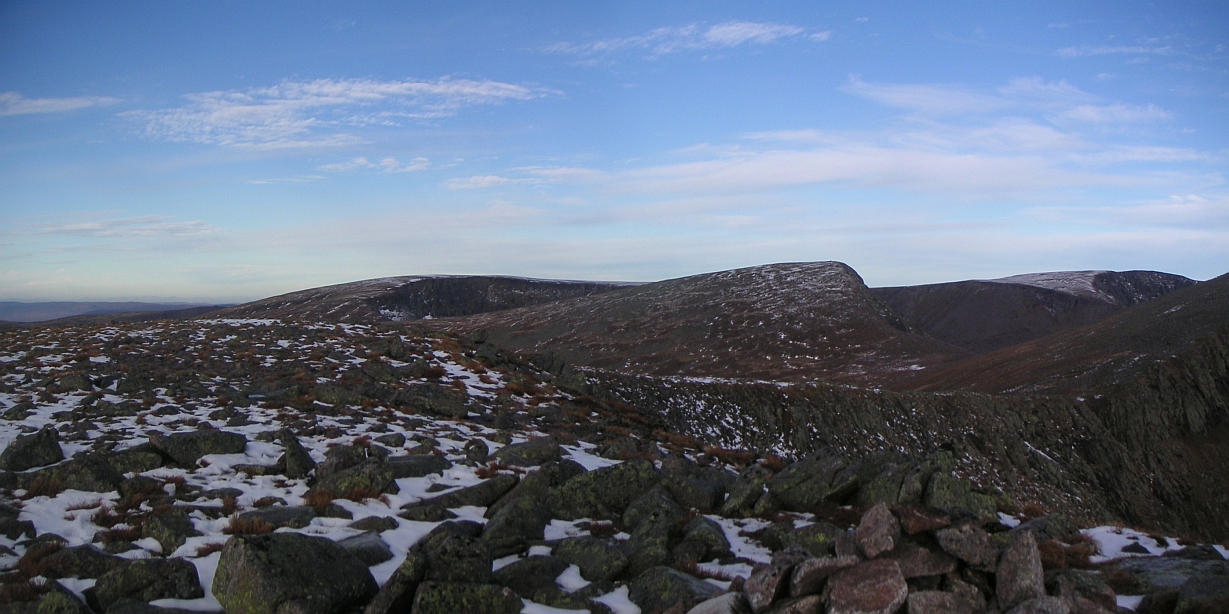 ![]() From Sgor an Lochain Uaine, Braeriach in the middle, Ben Macdui to the right, then Cairn Toul |