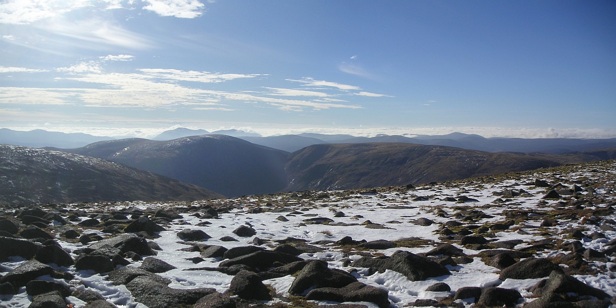 ![]() Ben Macdui to the left, and Carn a'Mhaim, from the top of Coire Odhar |