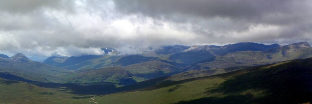 I think this is North East, with another Aonach Beag range on the left in the clouds - someday perhaps - and then Ben Alder and Sgor Gaibhre on the right |