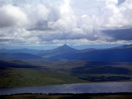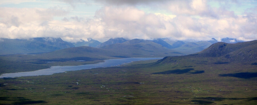 Mamores on left, Nevis in cloud, and the corner of Loch Ossian from the top of Sgor Gaibhre? |