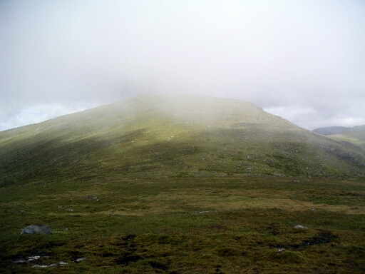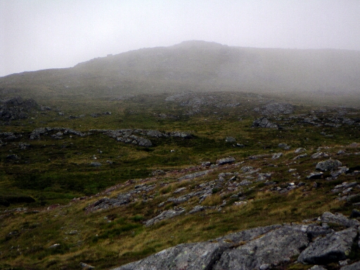First big piccie, but still too cloudy to see what we can see, other than the Sron Leachd a'Chaorainn at the start of the ridge, and on the right Sgor Gaibhre (my second target).