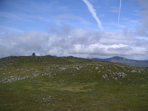 At last, the top of Carn Dearg, only 3 hours gone. Tip of Sgor Gaibhre on the right |