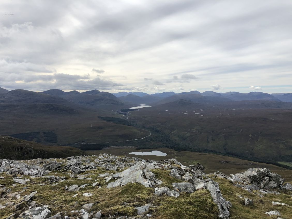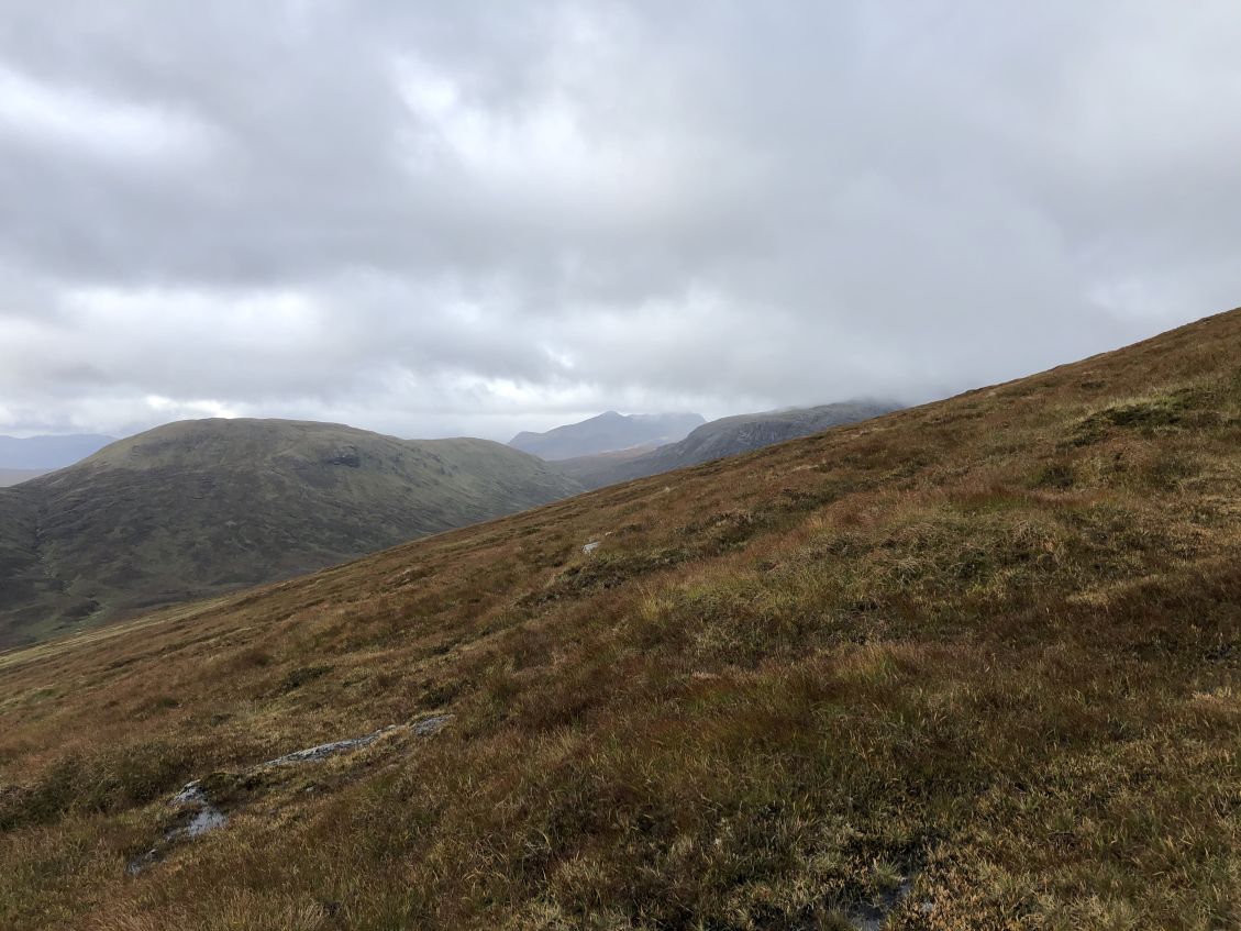 ![]() Meall a'Ghrianaion hiding Beinn a'Chaisteil. Apparently not enough of a drop between the two for this one to be a Corbett. |