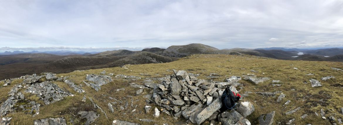 ![]() And the summit cairn, and East to the Ullapool hills and my final munro Am Faochagach. |