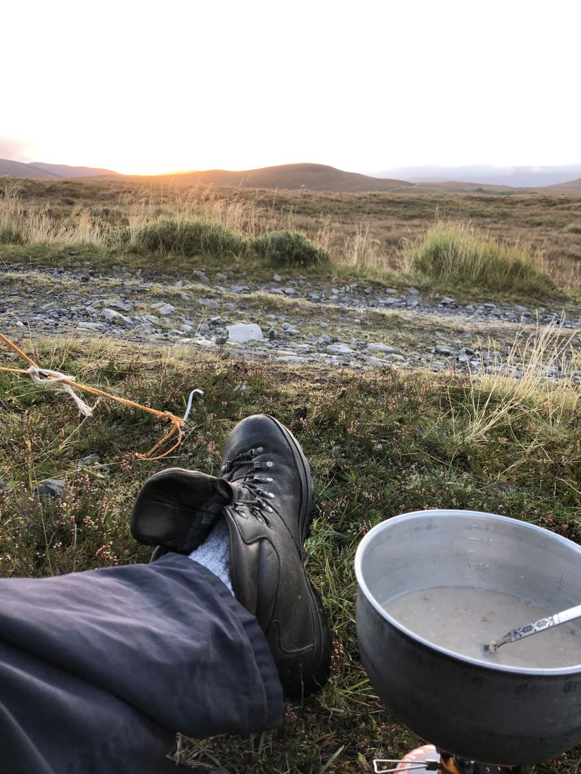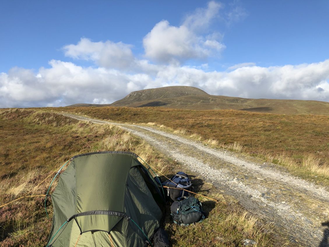 ![]() Not the most choice spot, but it's only for one night. Meall a'Ghrianaion still hiding Beinn a'Chaisteil. |