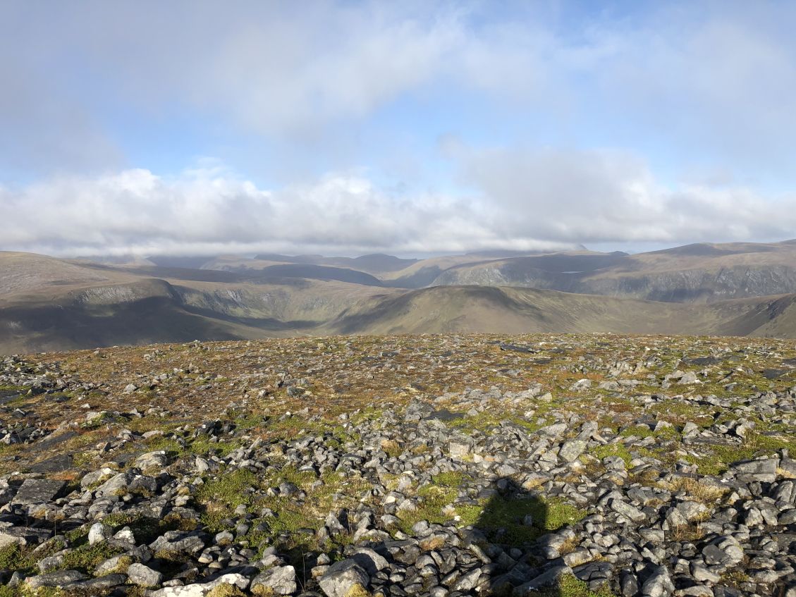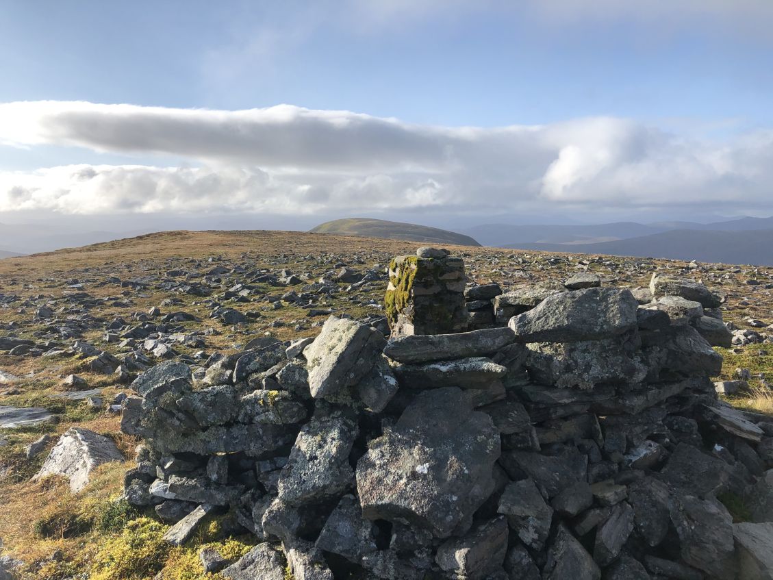 ![]() Summit of Meall a'Ghrianaion Meall a'Ghrianaion. Beinn a'Chaisteil now vaguely over there. |