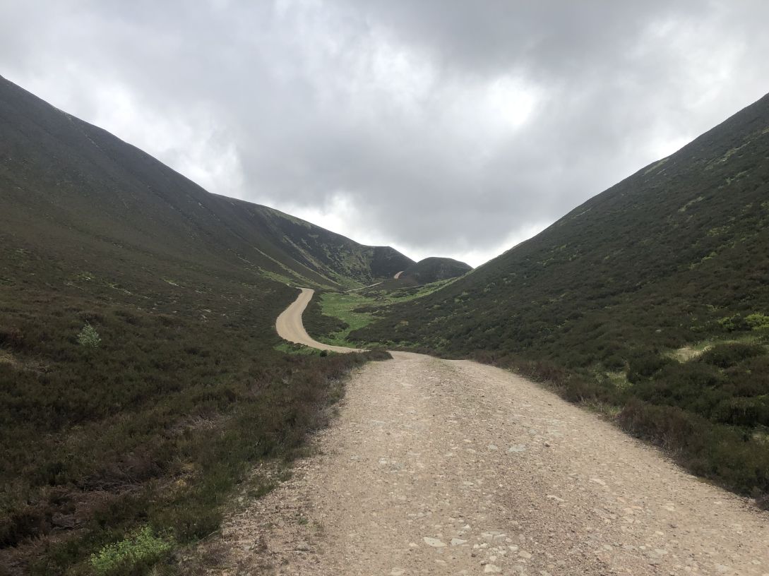 ![]() Part way up Carn Dearg Mor, looking over the the track back to camp, round the bend in the middle. Tomorrow's hill on the right hand side. |