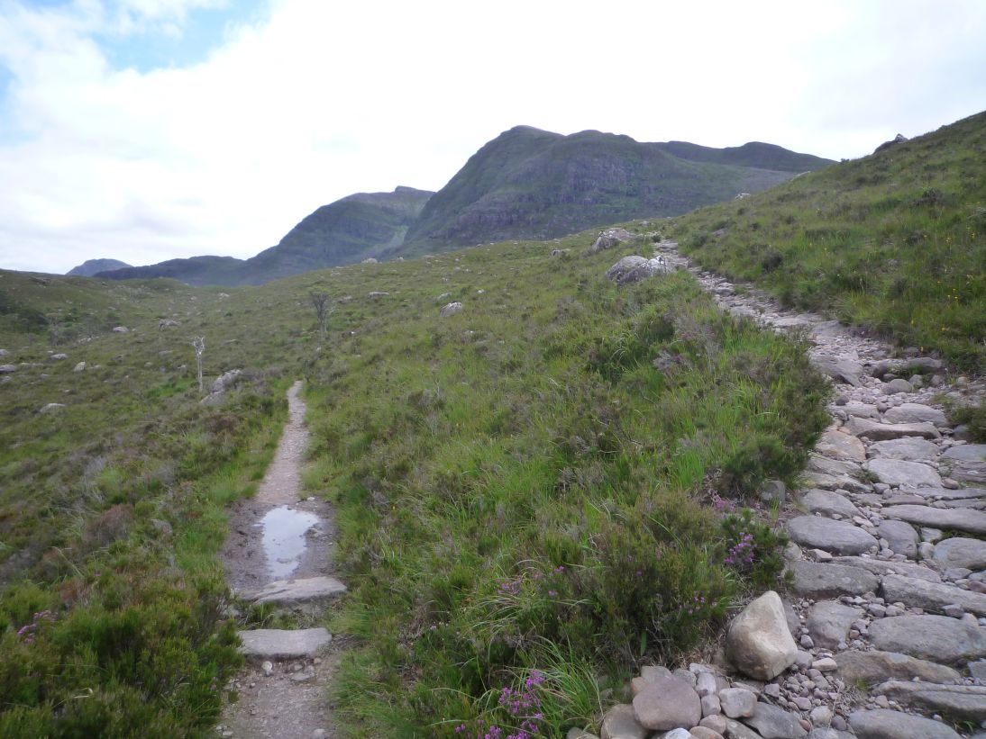 Decided to stay on the path rather than take the shortcut. Then off up Glen Torridon for an overnight camp, and more hills tomorrow. |