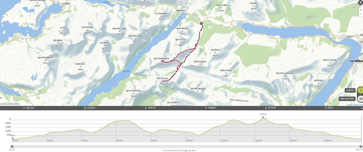 Seem to have recorded tomorrow's walk here too. Day one just the first 9 miles and 3875 feet of ascent. Second two tops are tomorrow. |