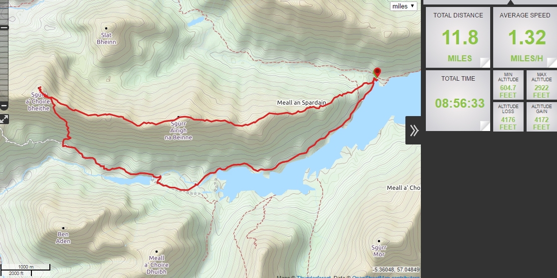 Not a bad day to set sail. Our usual departure point, looking over to Sgurr an Fhurain, which I must come back to do sometime. |