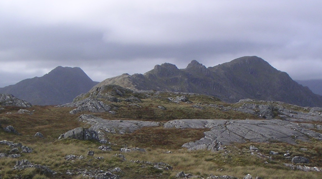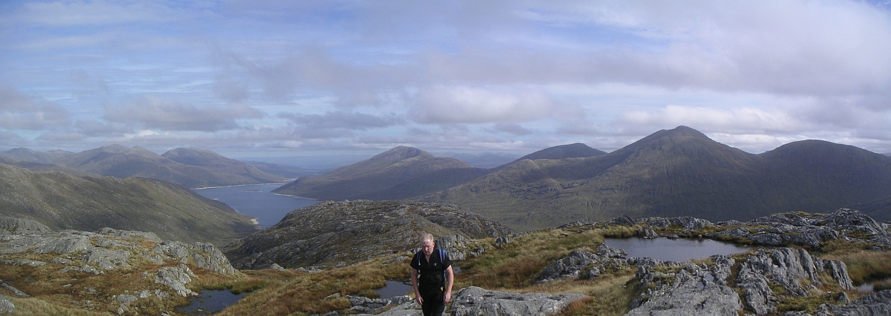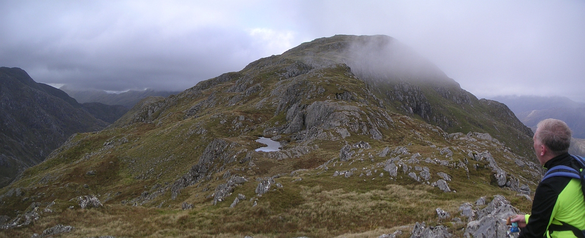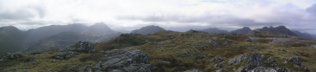 ![]() From the left we have Sgurr non Coireachan, Sgurr na Ciche, Ben Aden, Luinne Bheinn and Ladhar Bheinn, and finally our hill for the day, at the far away end of this ridge. |