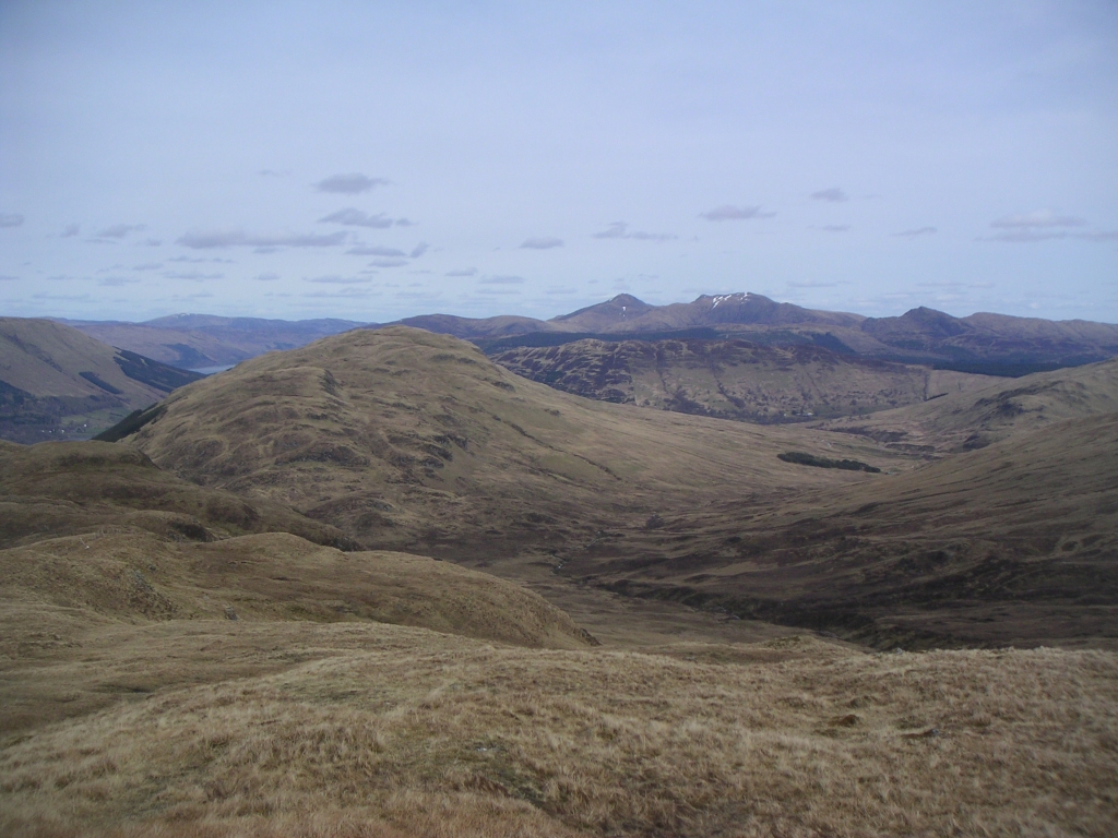 ![]() Top of Creag Mhor, looking down the Allt Gleann nam Meaainn (I think) with Benvane and Ben Ledi on the left. |