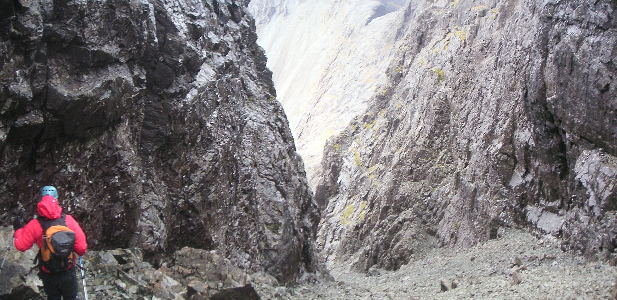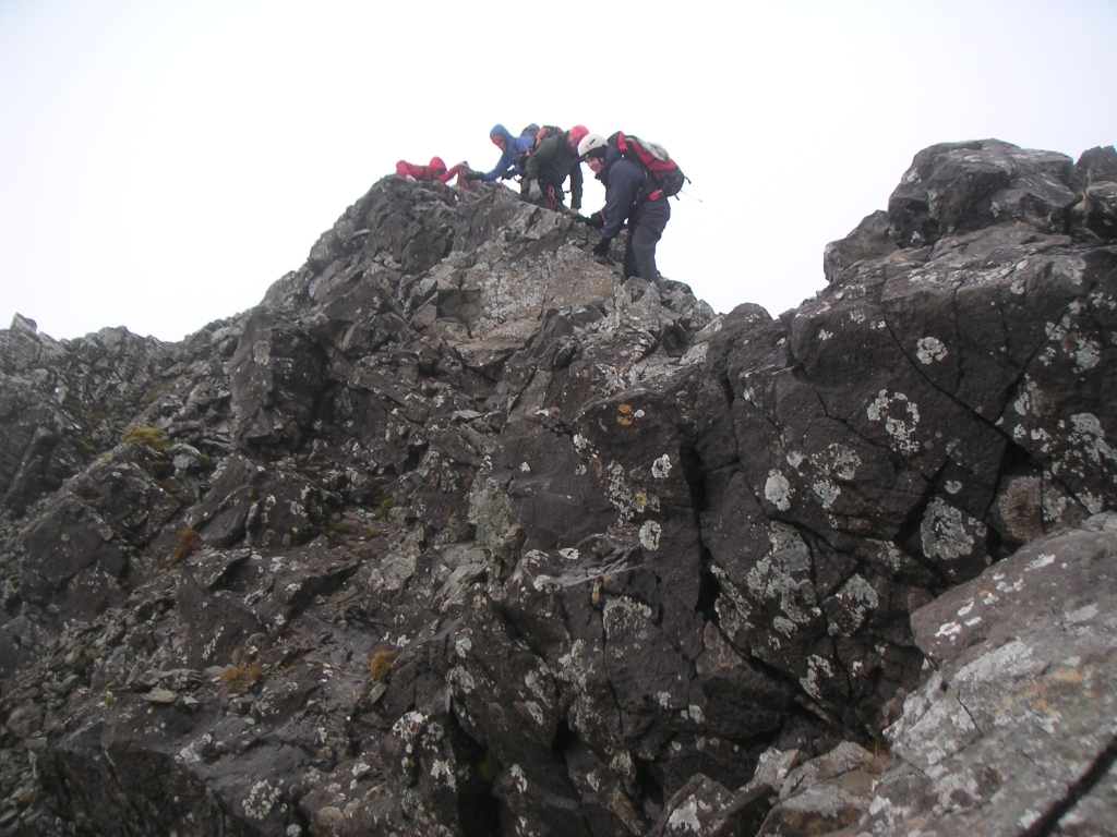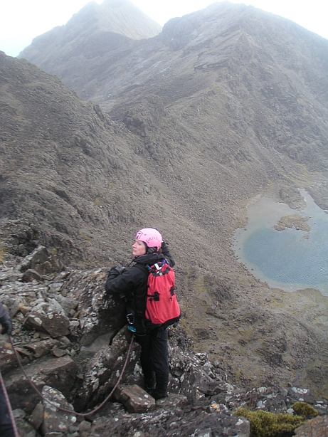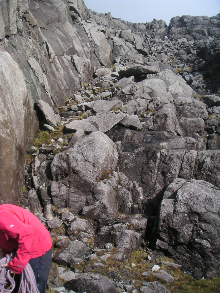 ![]() Clambering down from Coire Lagan, under the Cloch of Highlander fame, apparently. |