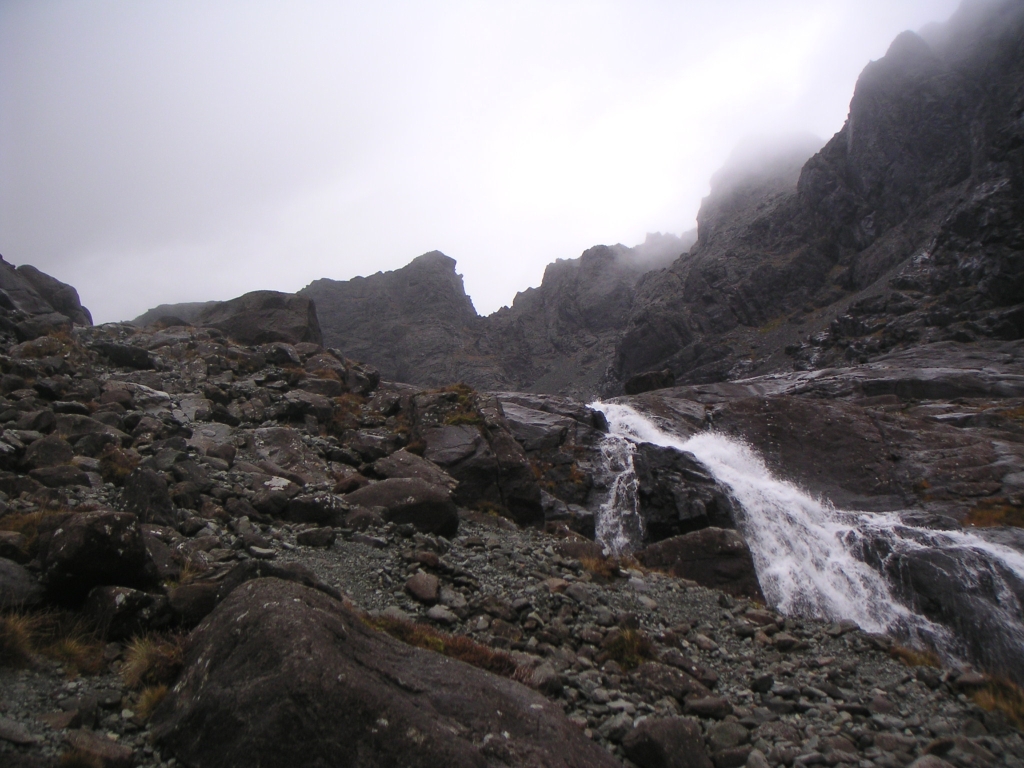 ![]() Heading into Coir a'Ghrunnda. First target is Sgurr nan Eag on the right. I opted for the easier walk up rather than scramble up the right hand cliffs. |