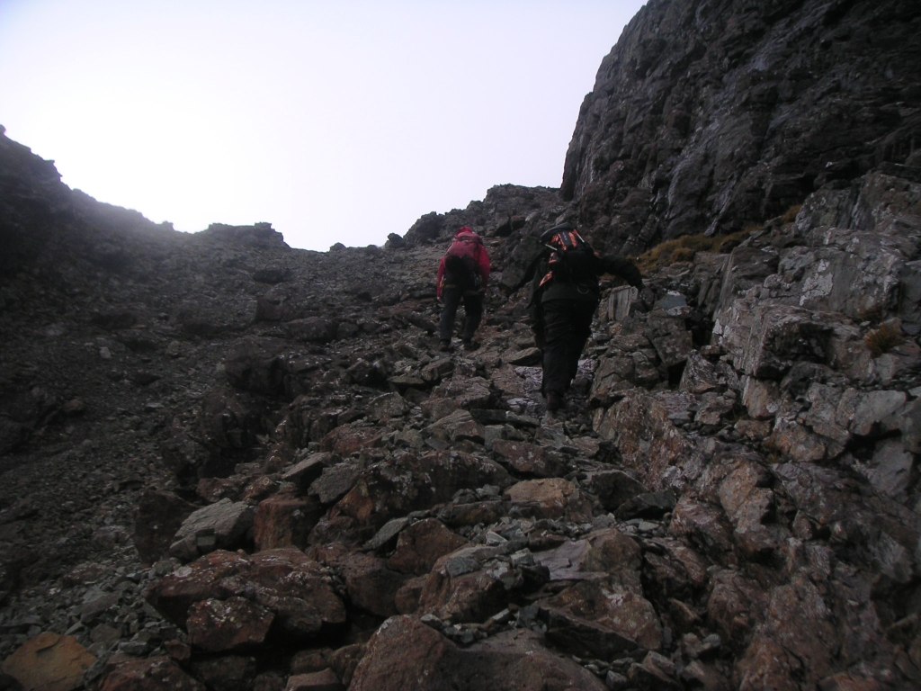 ![]() Another less than promising day as we headed back up Coire Lagan |
