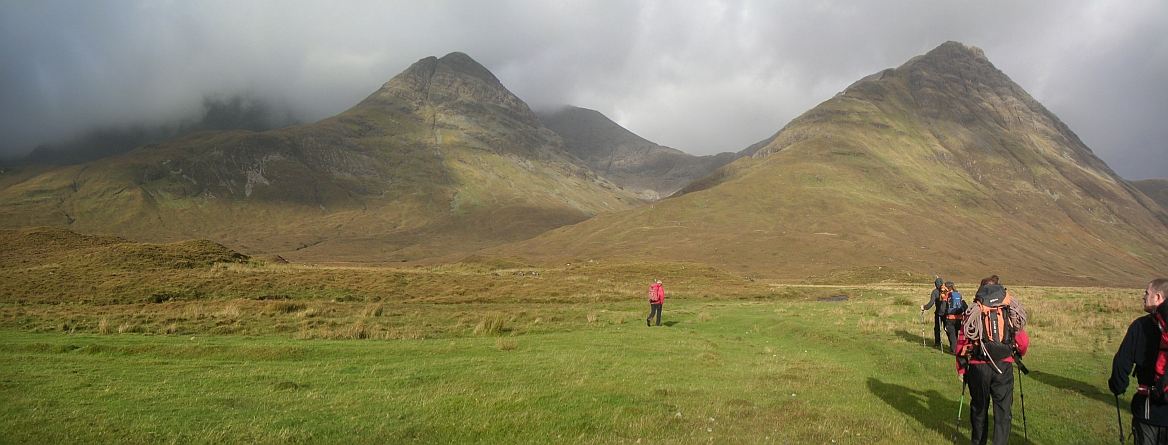 ![]() Setting off from the head of Loch Slapin. Sgurr nan Each in the middle. |