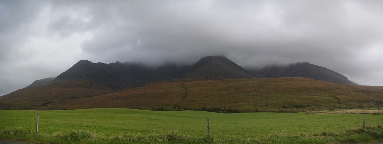 ![]() First site of some hills - Sgurr Mhic Choinnich and Sgurr Alasdair I think. |
