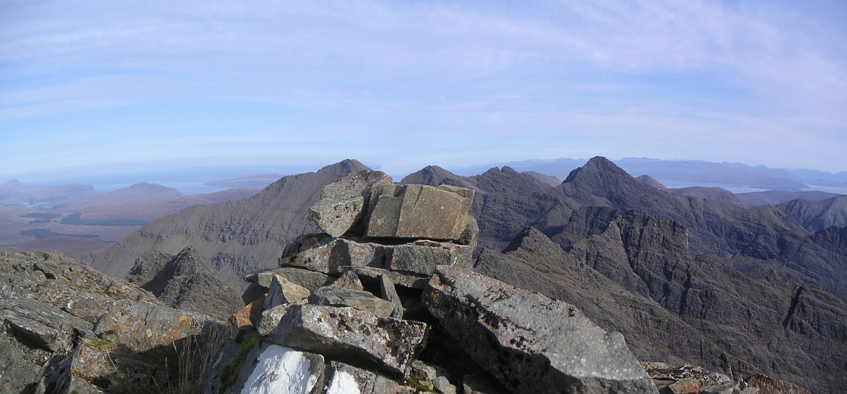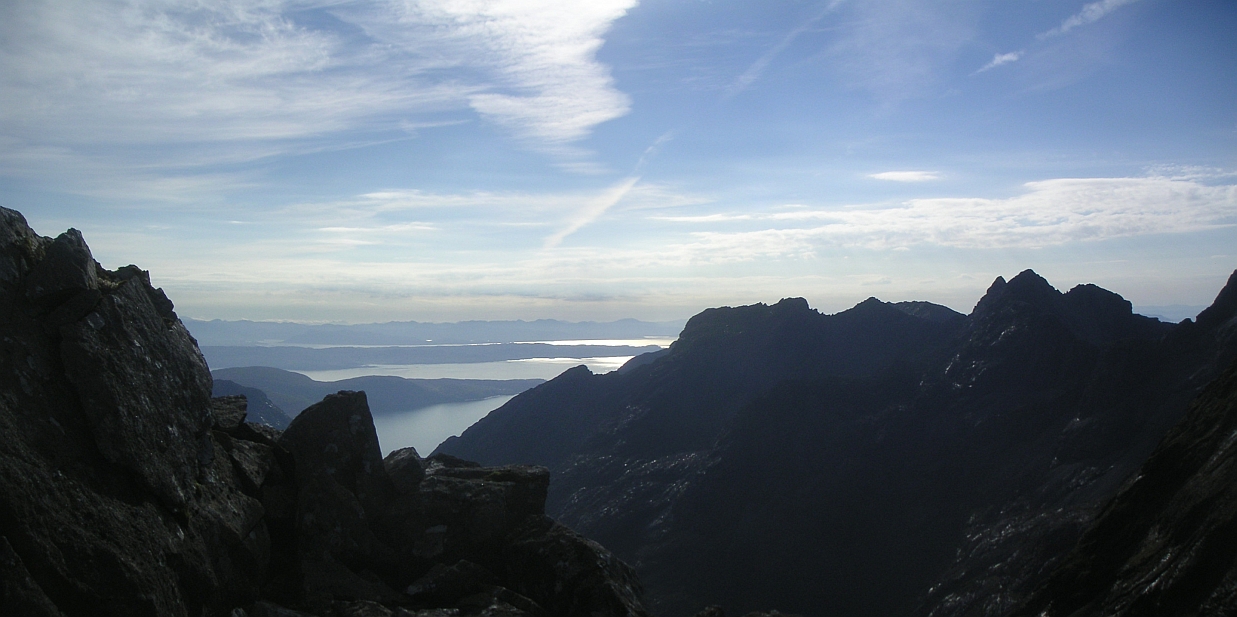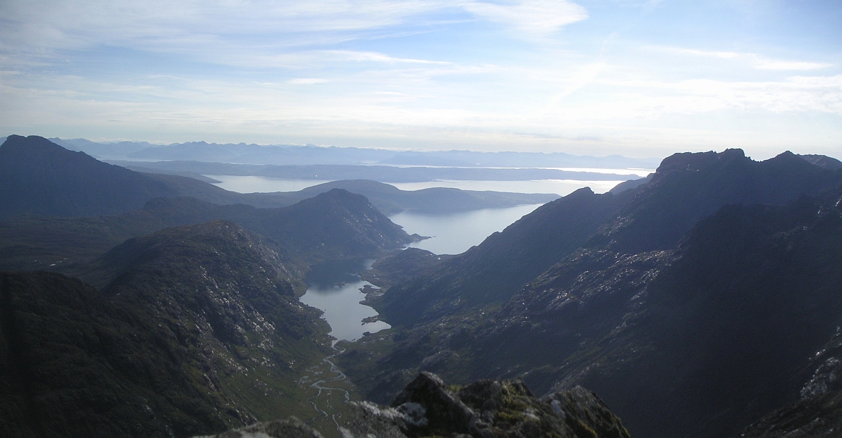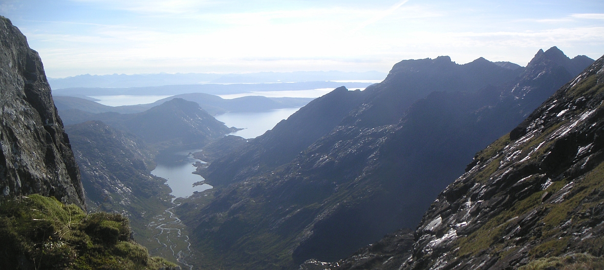 ![]() Makes it all worthwhile though - South across Loch Slapin, with Sgurr Dubh Mor, and then Sgurr Alasdair sticking up behind Sgurr Mhic Chonnich. |