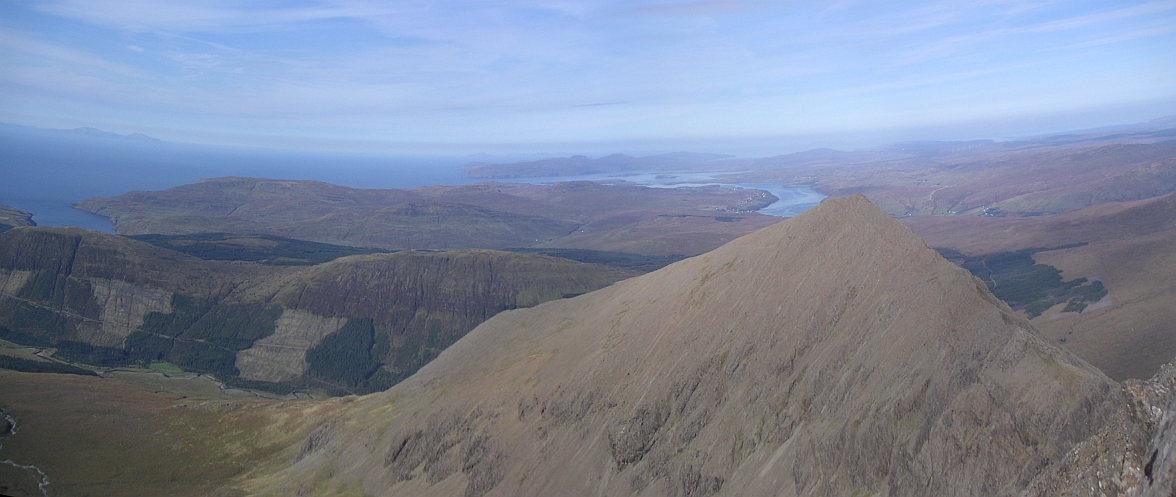 ![]() The final section of Sgurr a'Mhadaidh, looking up Loch Harport on the left, with Bruach na Frithe, Am Basteir and Sgurr nan Gillean still on the right. |