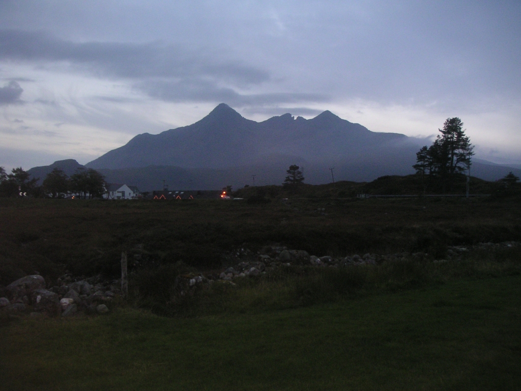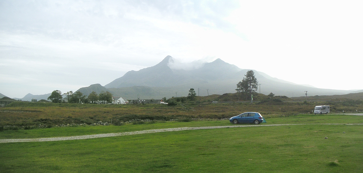![]() Arrived at Sligachan campsite in good time to pitch and relax before dark. Bizarrely Saturday 28th September is the last day the campsite is open, so all water is turned off around 11am on the Sunday morning. At least that means I only had to pay for one night. Looking towards the pub, and behind that Sgurr nan Gillean on the left and Bruach na Frithe on the right. Am Basteir thankfully hidden for now! |