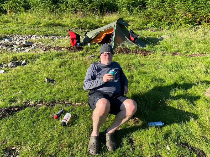 ![]() Enjoying a wee dram before the midgies came out. Need to get one of these chairs. |