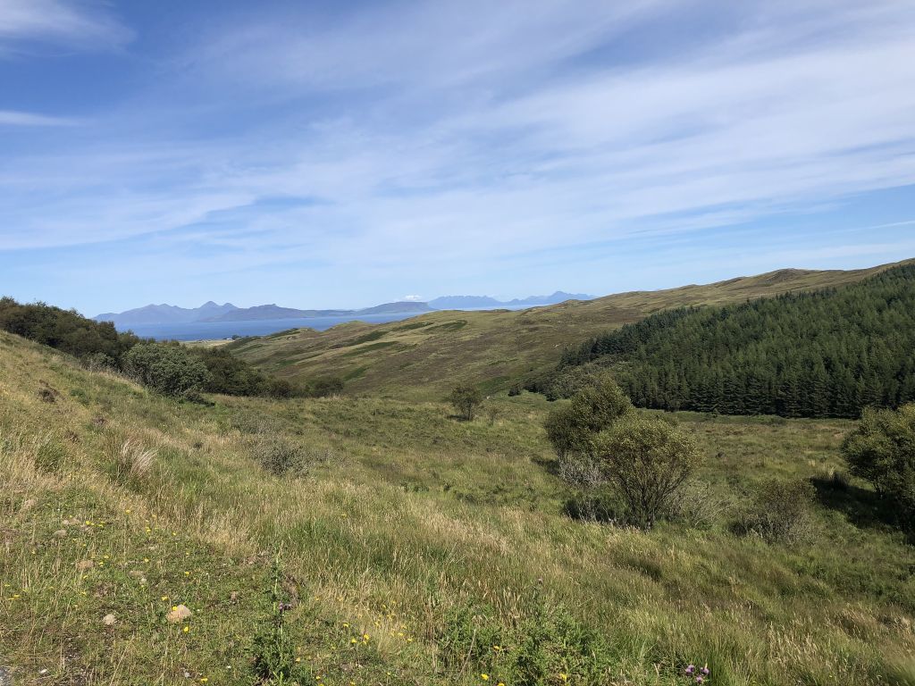![]() Lovely views out to Eigg and Rum, with the Skye Cullin on the right in the background. |